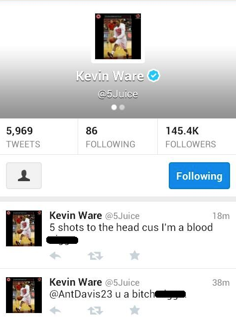 Kevin Ware claims he didn’t write those tweets and that he has no beef with AD. apparently AD’s ex-gf is Ware’s current gf
