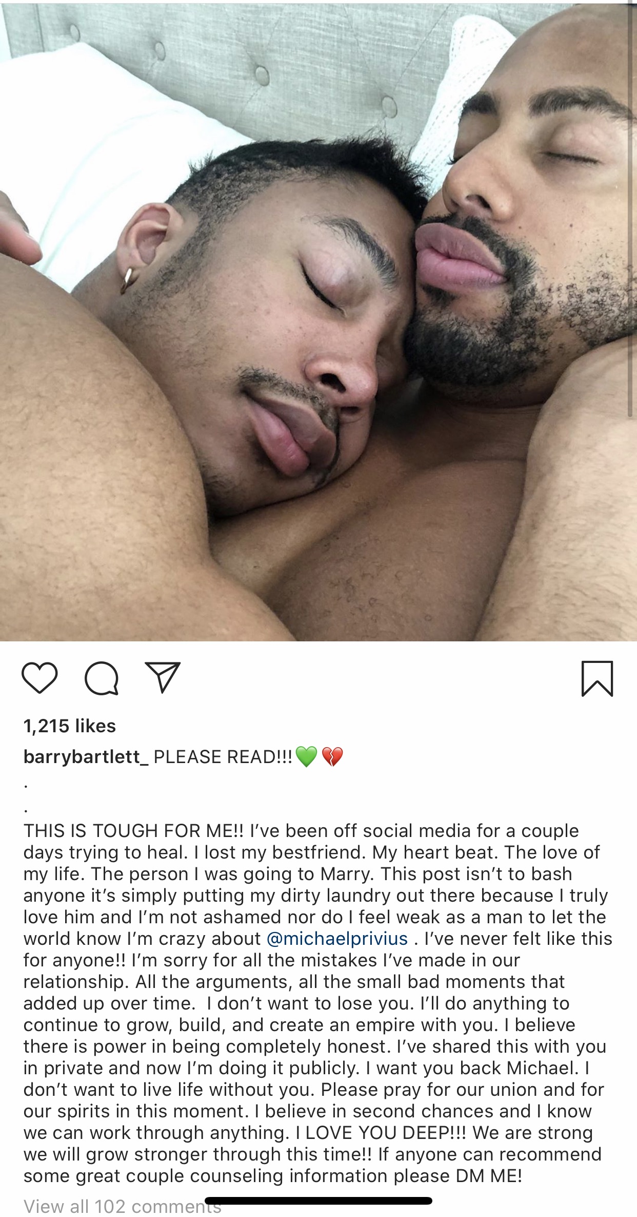 What gives anybody the right to tell their story all from posts of what they’re seeing but never once actually chatting with them! Barry and Michael both are amazing guys. And I think this was an act of courage, bravery, and determination (that this generation lacks) to be bold and share your loved one. The fact that Barry was strong enough to be as transparent as he was it’s amazing! We all got to see all the good post, why not the bad and rather than judging or criticizing, how about we send love and light their way!! When I saw this it really inspired me, but mostly touched me that someone recognizes they messed up and actually was willing to do whatever is necessary to ad value to their relationship in a healthy way!!! It irks me that so many people have so much negativity to say, when it takes less energy to put positivity into them! Also, Michael and Barry are in a good space. They chat all the time and Michael eventually thanked him for professing him love on social media. So I guess the jokes on all of you! Assholes!! Keep shining Barry!