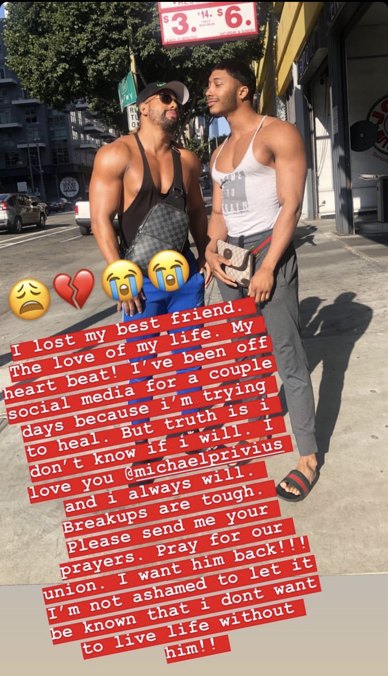 I can’t stand narcissists and their dumb ass relationships; furthermore, it seems like everyone is a hoe these days! Shit! First of all, muscles ain’t special that someone needs to pay to be with someone with them. Secondly, with all of these HIV cases getting steroids to prevent wasting, guys with their look come a dime a dozen. One could only hope that Michael is strong enough to move on, but as history has proven he probably won’t because he’ll miss the clout their vanity relationship brought in. I never got the hype of dating someone who looks like they could be related to me anyway. They look like the same fucking person. Nothing sexy about it. Creepy af and weird.