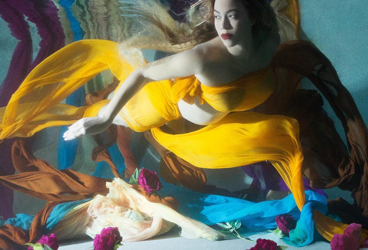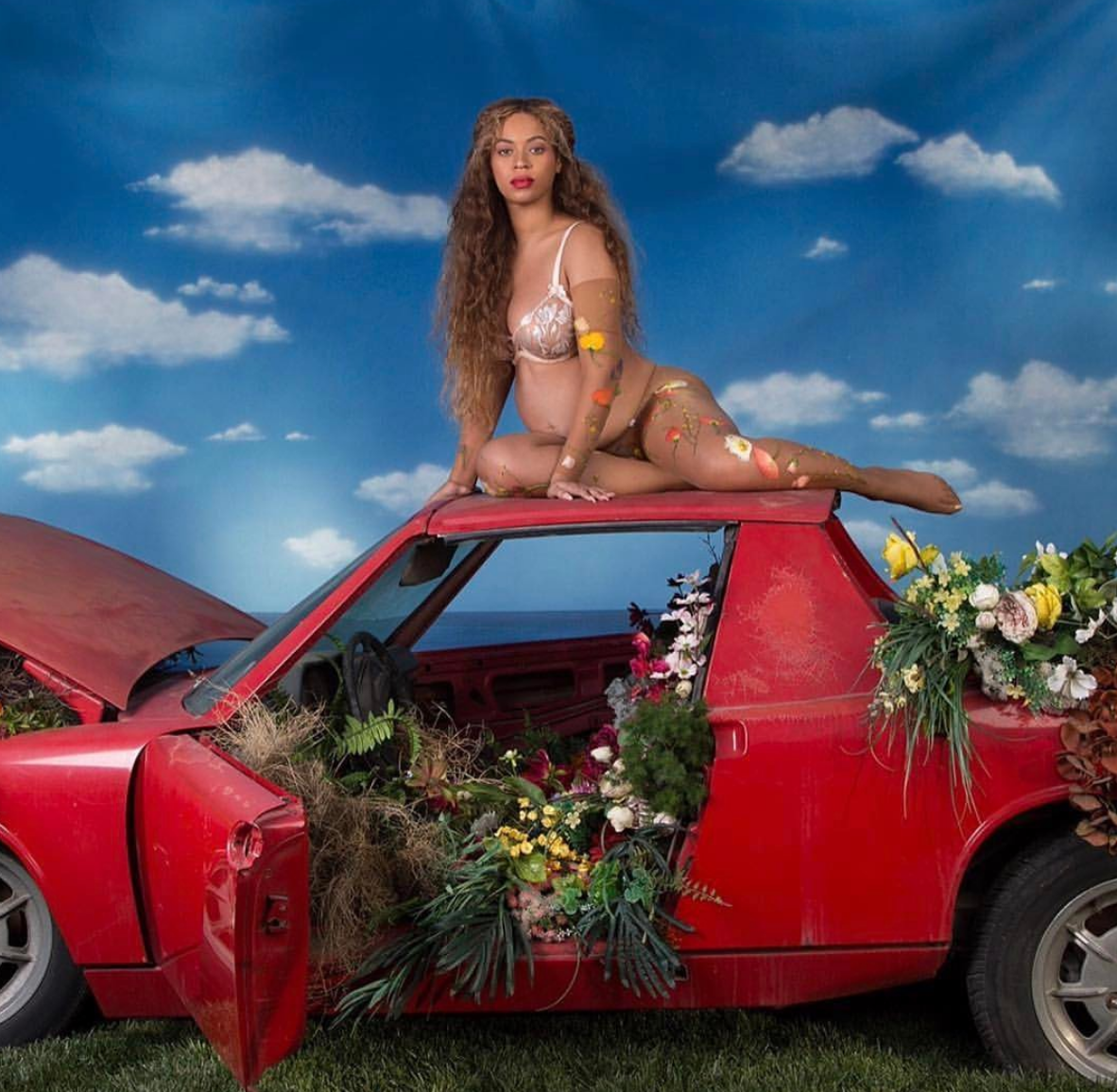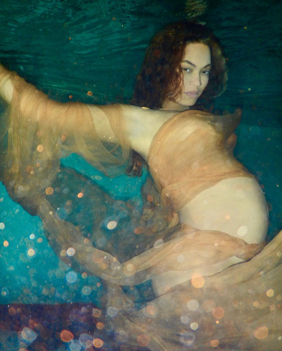I think she’s going for a modern day Venus type of vibe wirh the flowers and the water . Also is it me or do celebrities sprout twins at will? * sidenote she’s making sure to quell thise rumours of a fake pregnancy this time around lol
