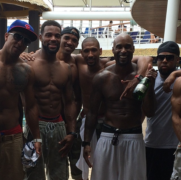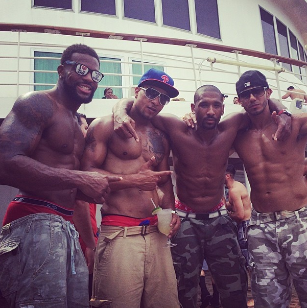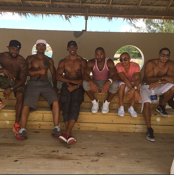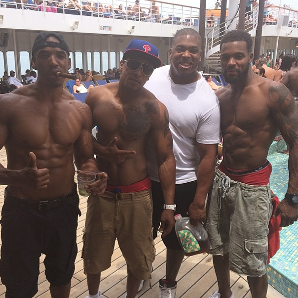 This dont make no damn sense. Lawd knows out of all the men that have been featured on the foxhole including Dez Bryant, Bolo and Victor Cruz, I would lay it all down for Braylon. This dude is one of the most perfect men on earth to me, if I ever saw him in person, I would probably be cheesing so hard he would know I was gay and a psycho because I would be stalking his ass. Forget all these designated days for Man Crush, this is my man crush everyday of the year. Now I am going to say this, one of those dudes in the above pics and I want say who is giving me a vibe that he may be down for the crown. I would love to roll in a crew like this, I know the majority have to be str8, I dont think that many gay dudes could roll together at one time like this. I follow B on IG and he seems to love to hang out with his homies all the time.