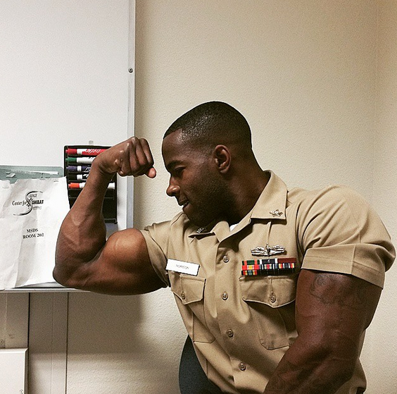 he’s handsome he looks like that actor nate parker a lil bit…his body though and the fact that he’s a soldier…mmmhmm and i love chocolate brothas also…there’s something about beautiful brown skin lol