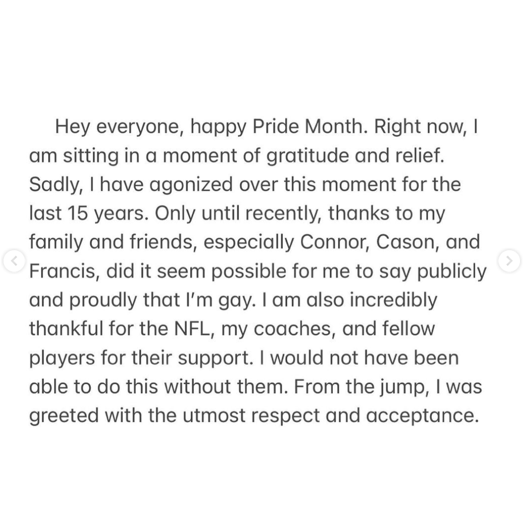 So good for Nassib. Wont change a damn thing for white people, only emboldens them but for black people they still have to go to their grave hiding who they are and living a lie to themselves and to their family BECAUSE we make it our business to want to know WHO EVERYBODY sleeps with, and who is married and who has kids and who is blah, blah, blah. Humanity does not get any marks from me. It has its priorities wrong and its morals backwards. We are amazing creatures but flawed. As we get older as a society we get wiser, Hopefully, one day someone like Nassib and Michael Sam will not have to spend time and energy telling the world who the fuck they sleep with, forcing tacit acceptance, from a society who really don’t give a fuck anymore.