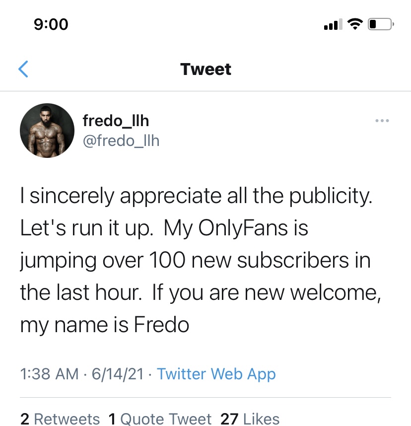 I think he was meaning Fredo has the privilege to commit transgressions and still be accepted because of his looks. Not just the homophobic statement, during pride month of all months, but domestic abuse. He was in jail & the gays couldn’t wait until he got out to throw money at him.