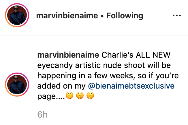 Jamari, you said, I like that Charlie is boring af. Agreed. I feel like less exposure leaves more to the imagination whereas the other models Marvin’s shoots constantly show out on IG.