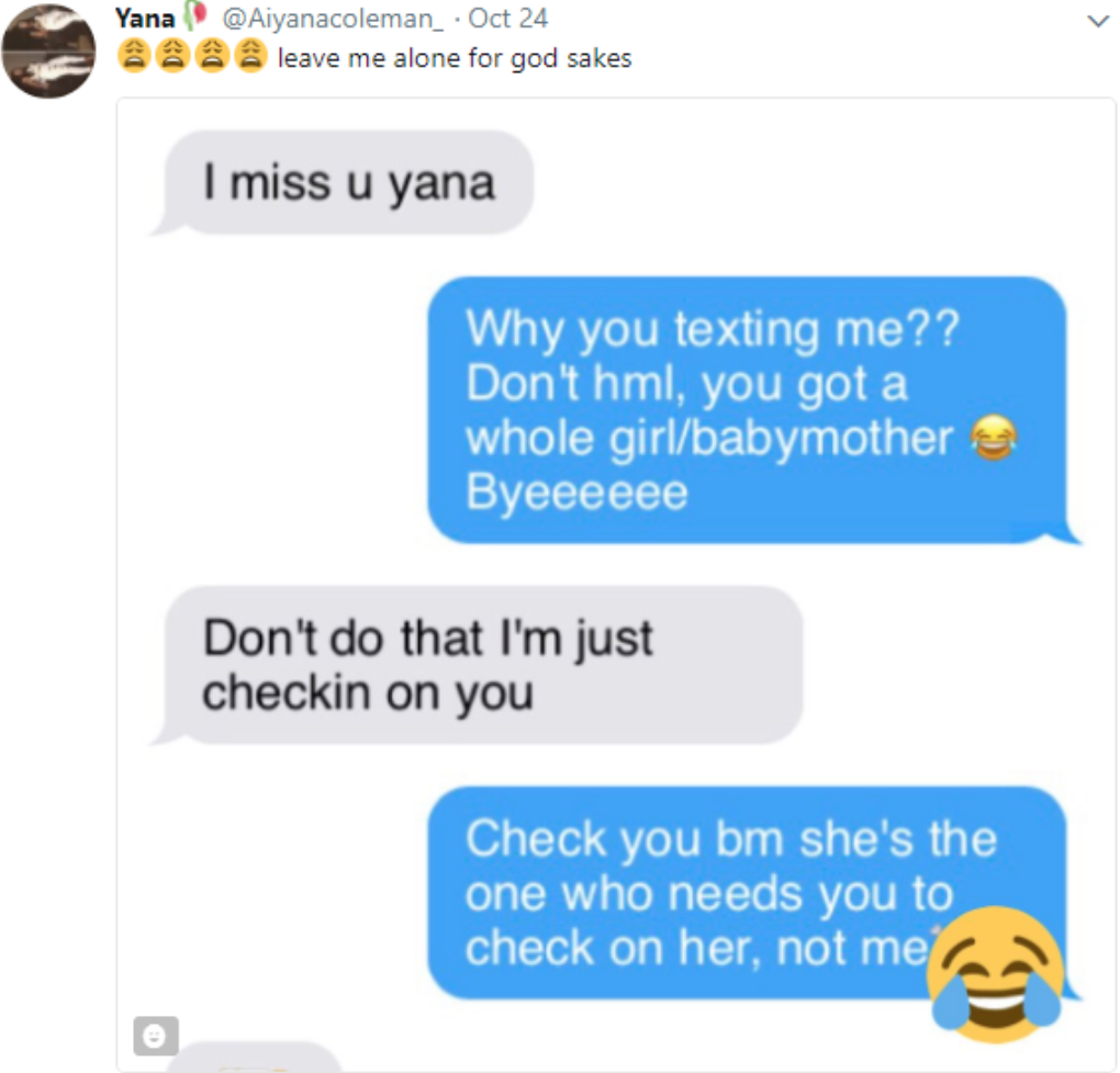 Her text was evil. Regardless of whether you dislike someone or not, she lost a child…a child with the same low life that made a baby with her. Women are funny like that. They take the animosity/frustration out on the other woman, but readily take the dude back. WTF?!