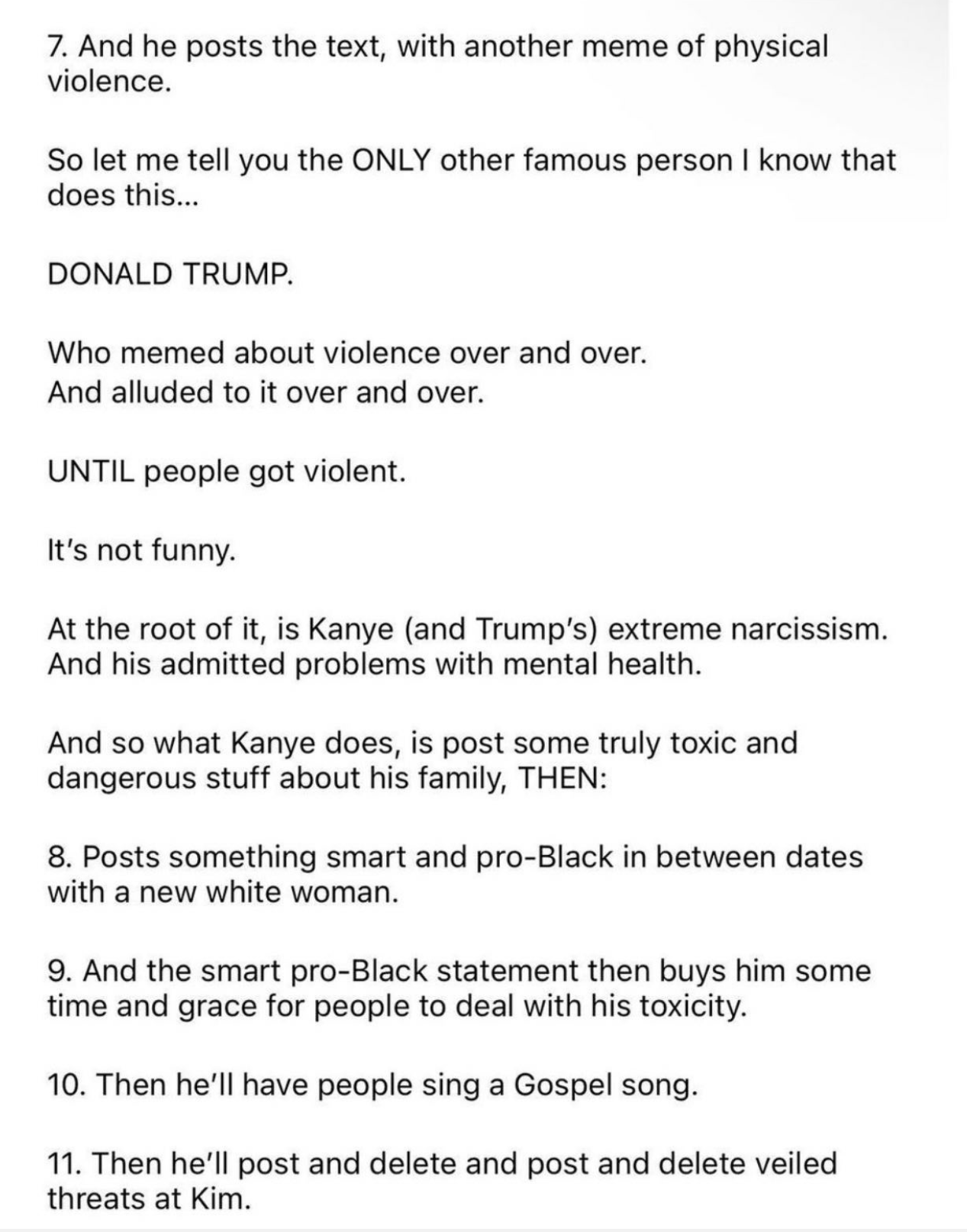 Actually good insight from the foxholer. I try not to pay Kanye any mind these days. When people start doing the most on a regular basis, that’s when I tune out. I don’t feel anything for Kim. Those poor kids that have these 2 narcissistic idiots as parents is who I ultimately have immense pity for. Hopefully they turn out better than their origin.