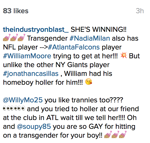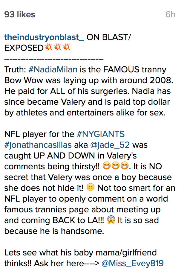 A lot of these hyper-masculine rappers and athletes like pre-op transsexuals. They’re usually the bottoms and in no way do they consider themselves gay. Very odd.
