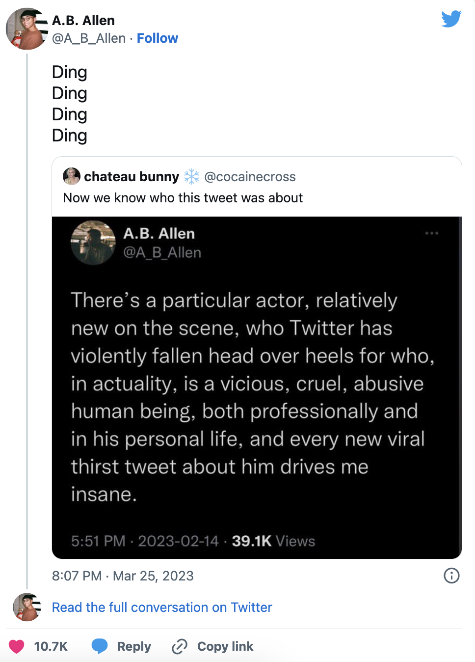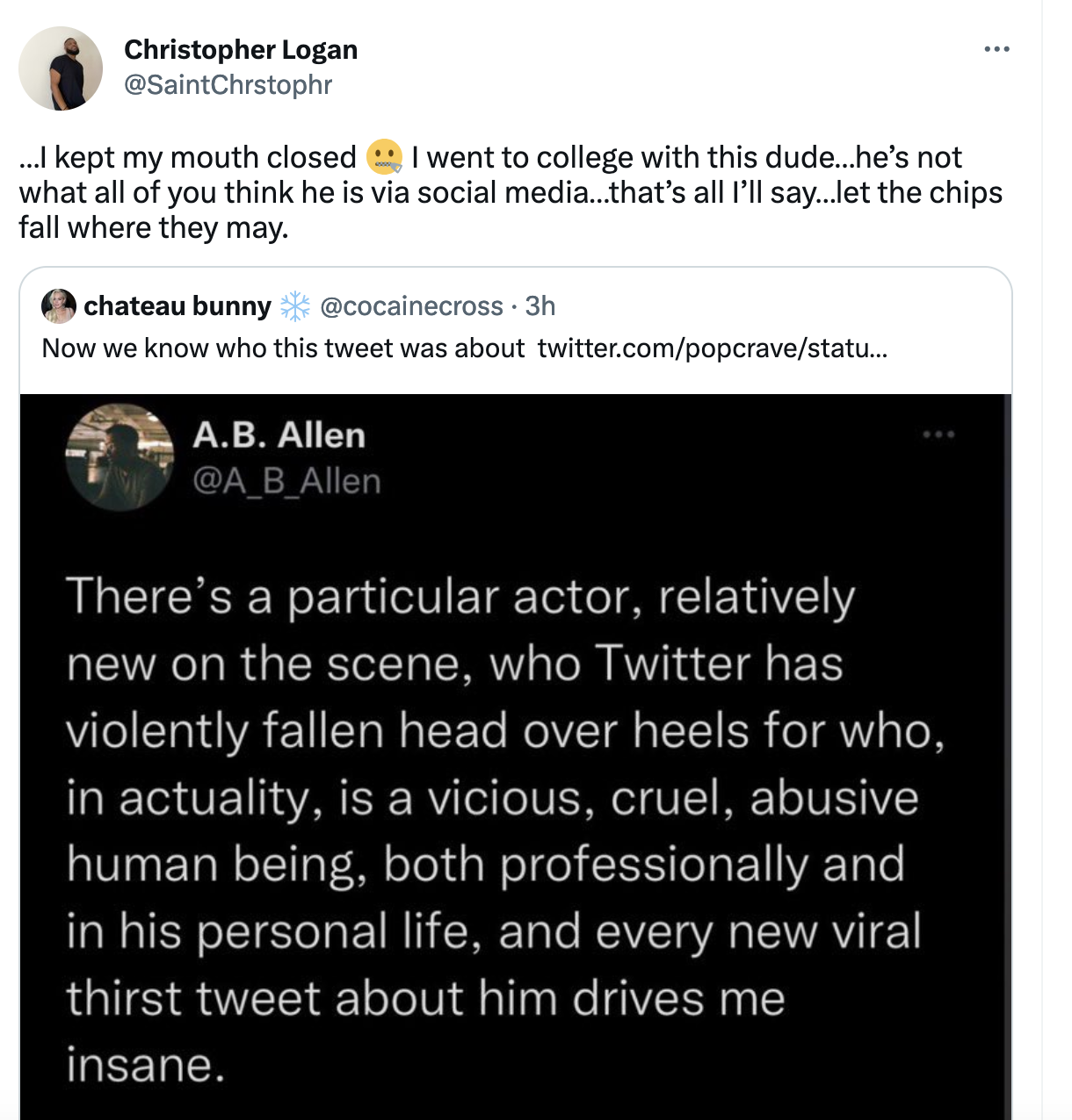 Hopefully .we will get receipts ,videos , witnesses willing to talk about what really happened. The only way he can survive this is that “Becky/Karen” comes with lot of baggage , questionable history and drugs or alcohol was involved. I just can’t see this Brother ( other than dating Becky) being so reckless with such a stellar career speeding straight ahead. However , I didn’t think Bill Cosby and Will Smith would be capable of such bad judgement.