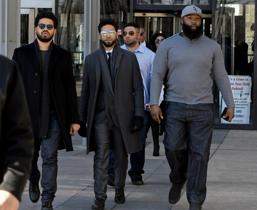 Jussie Smollett and legal team arrives for hearing about cameras in the court room.
