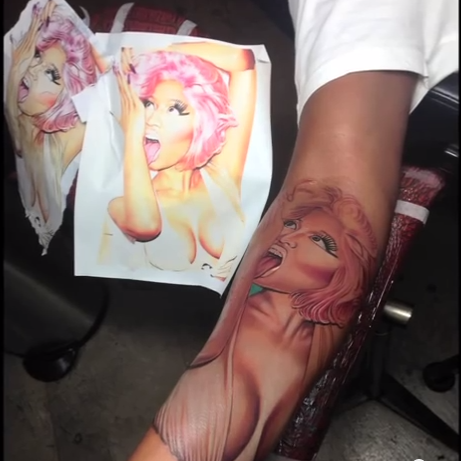 Nothing annoys the hell out of me more then a in-cohesive mess that tattoos just anything on their body. Bet money every time he needs a new toy she make him do this after asking her permission.
