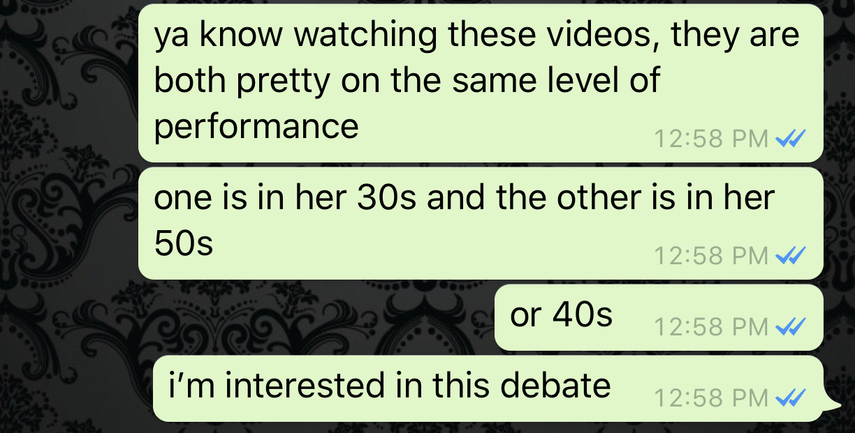 One is a trained dancer, the other is just following choreography. Bye!