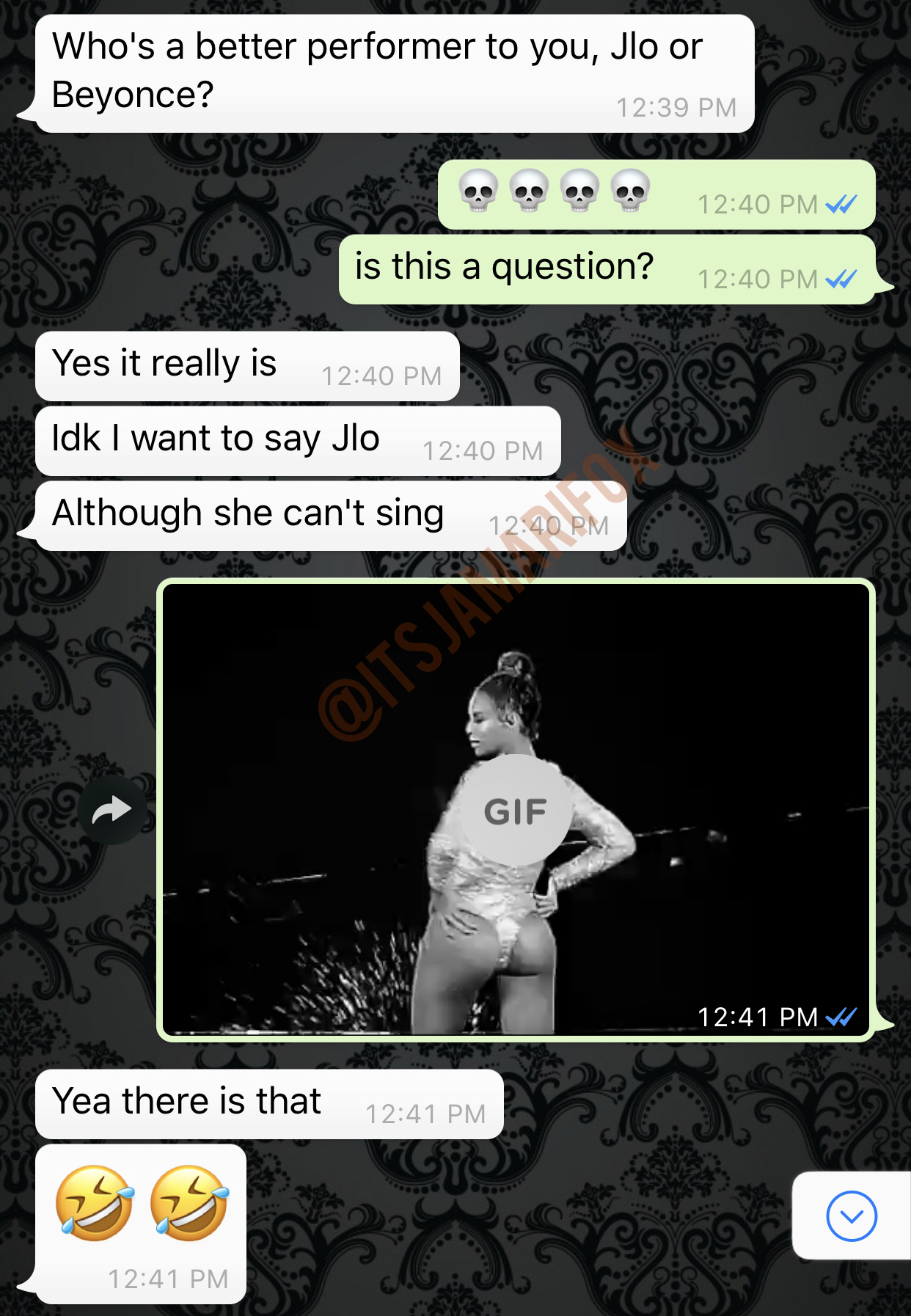 Beyoncé all day but I appreciate JLo for what she is and what she does. She can dance her ass off. I appreciate her for that. I will forever love “Waiting for tonight”. Shit I even fuck with “Una noche mas” to be honest. Lol. Beyoncé is revered for a reason. She is todays standard of an amazing performer. The sad thing is at one point, especially in the 90’s, most entertainers could perform just like or even better than Beyoncé does now. Most entertainers now just bop around on stage while the track plays in the background. At least be able to dance your ass off, like JLo, if you’re not a good entertainer.