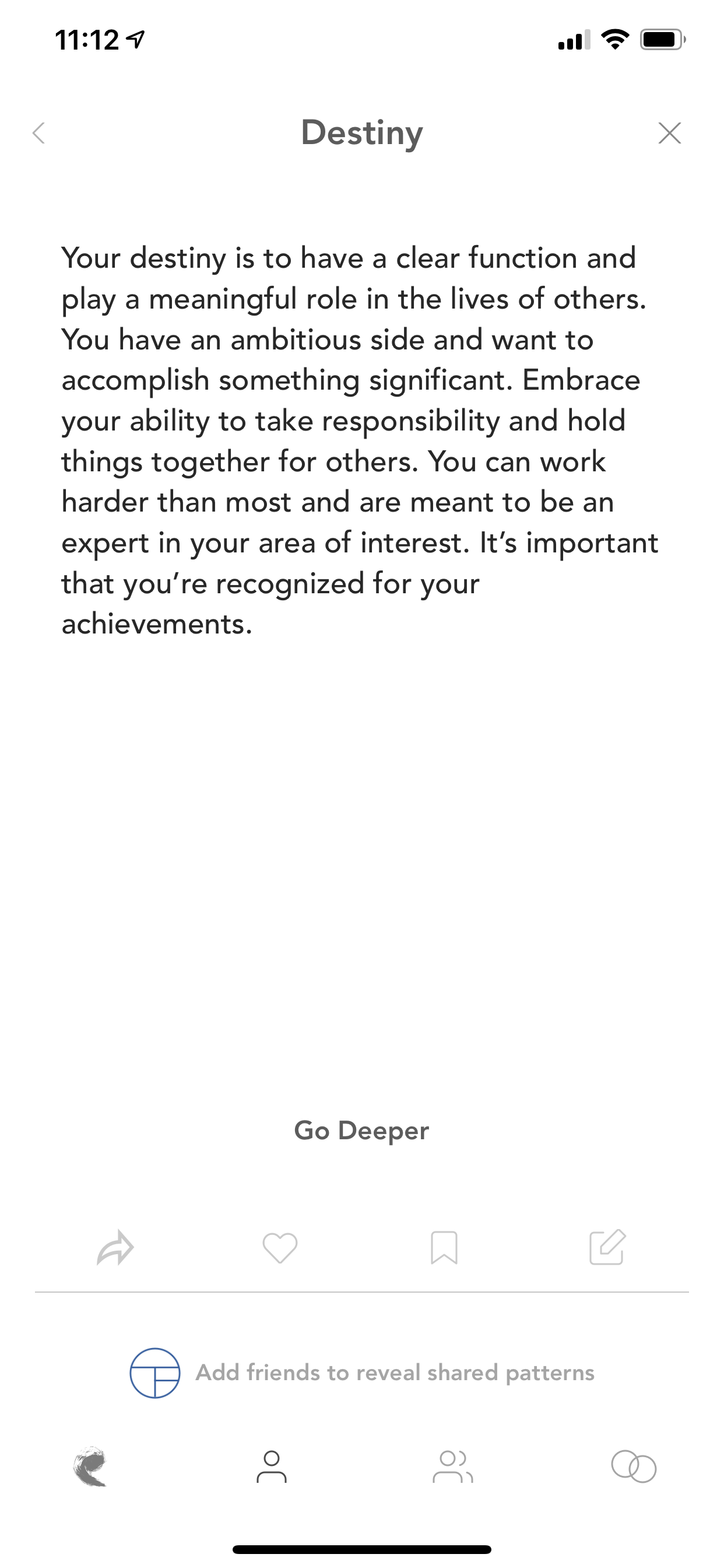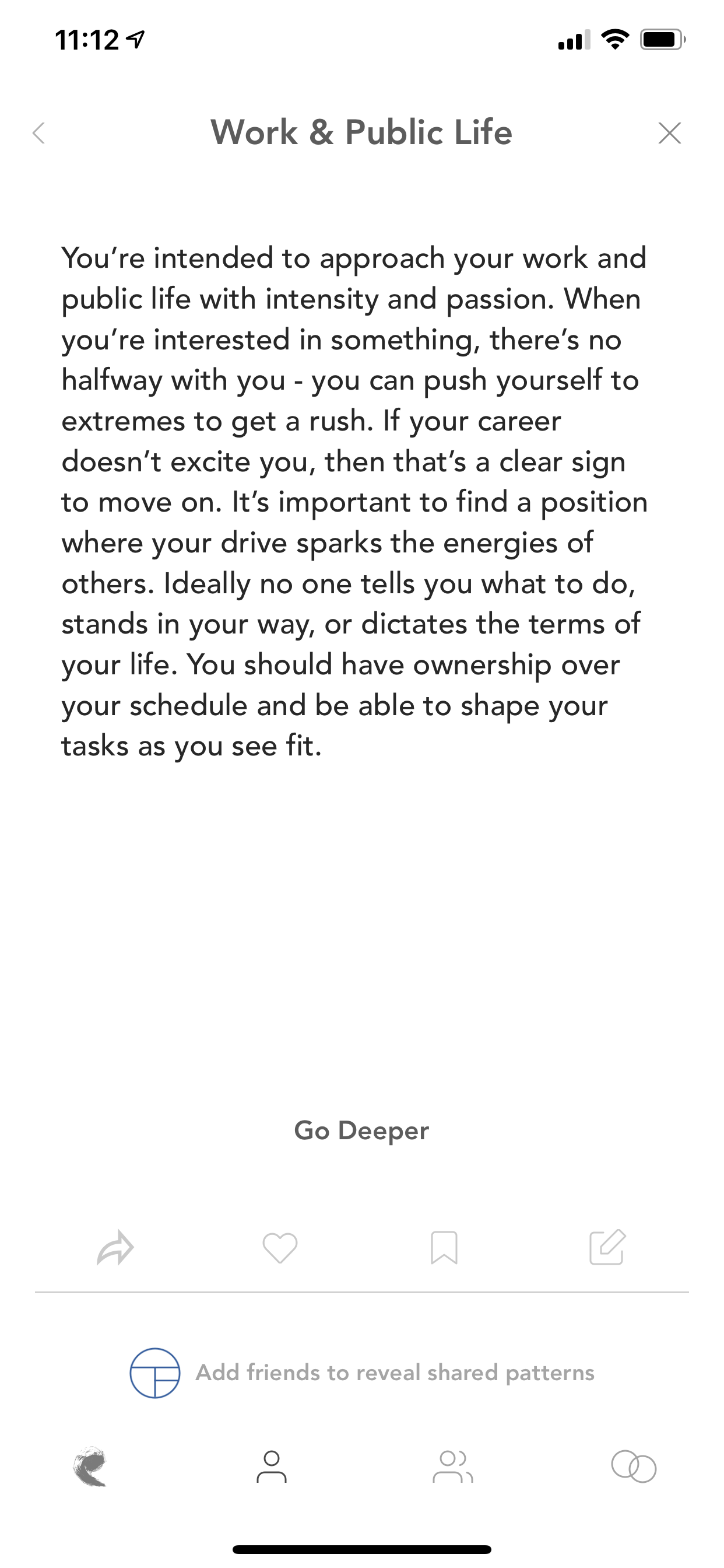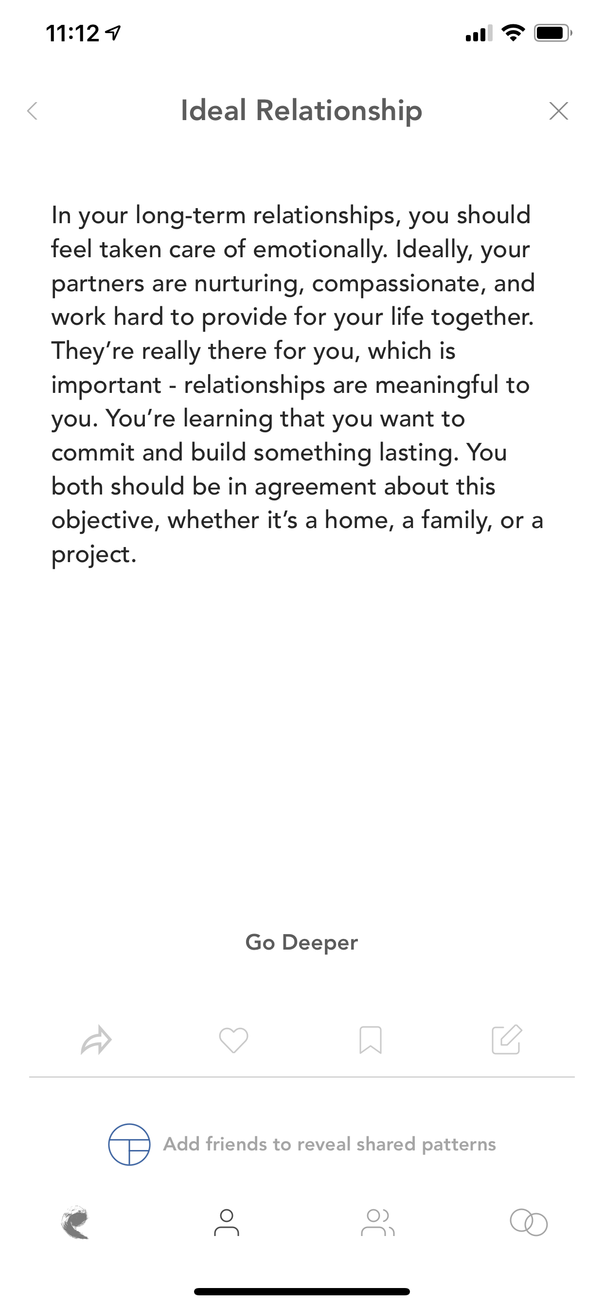 This app is legit witchcraft. There is no way that you’re telling me that you can get a definitive read and fix on somebody just by giving a DOB and TOB. It doesn’t seem generic at ALL. What makes it scary is that I’m on a legit journey of self love and self care as a result of a breakup i’m still trying to get over. If I didn’t go through the breakup, none of what the Pattern said about me would be applicable. That’s what scares me the most.