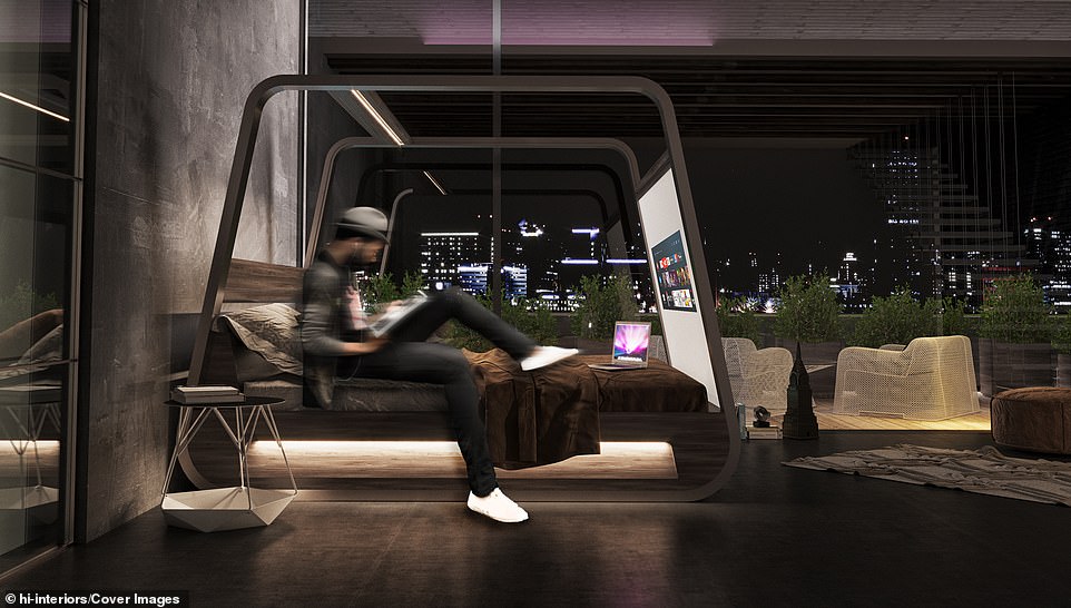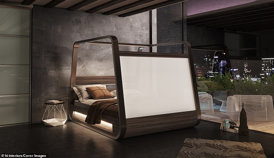An architect has designed a cutting-edge bed which is equipped with a 4K projector, a 70-inch screen and a custom-built app to allow owners to binge watch TV without having to get up.