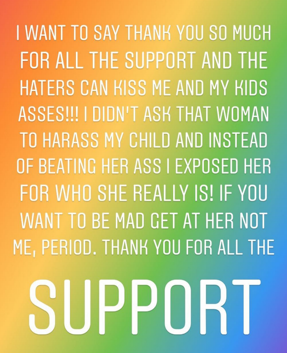 “I have no problem with enterprising young women. I want to support that little girl. It was all the mother and just about being quiet,” she said.