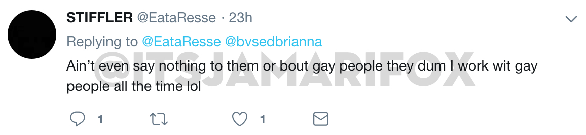 Why is everyone getting so “emotional” over this issue? Ellen Degeneres (a white wealthy lesbian) decided all black men can be as homophobic as they please. We are trolls if we call out the anti gay tweets online.