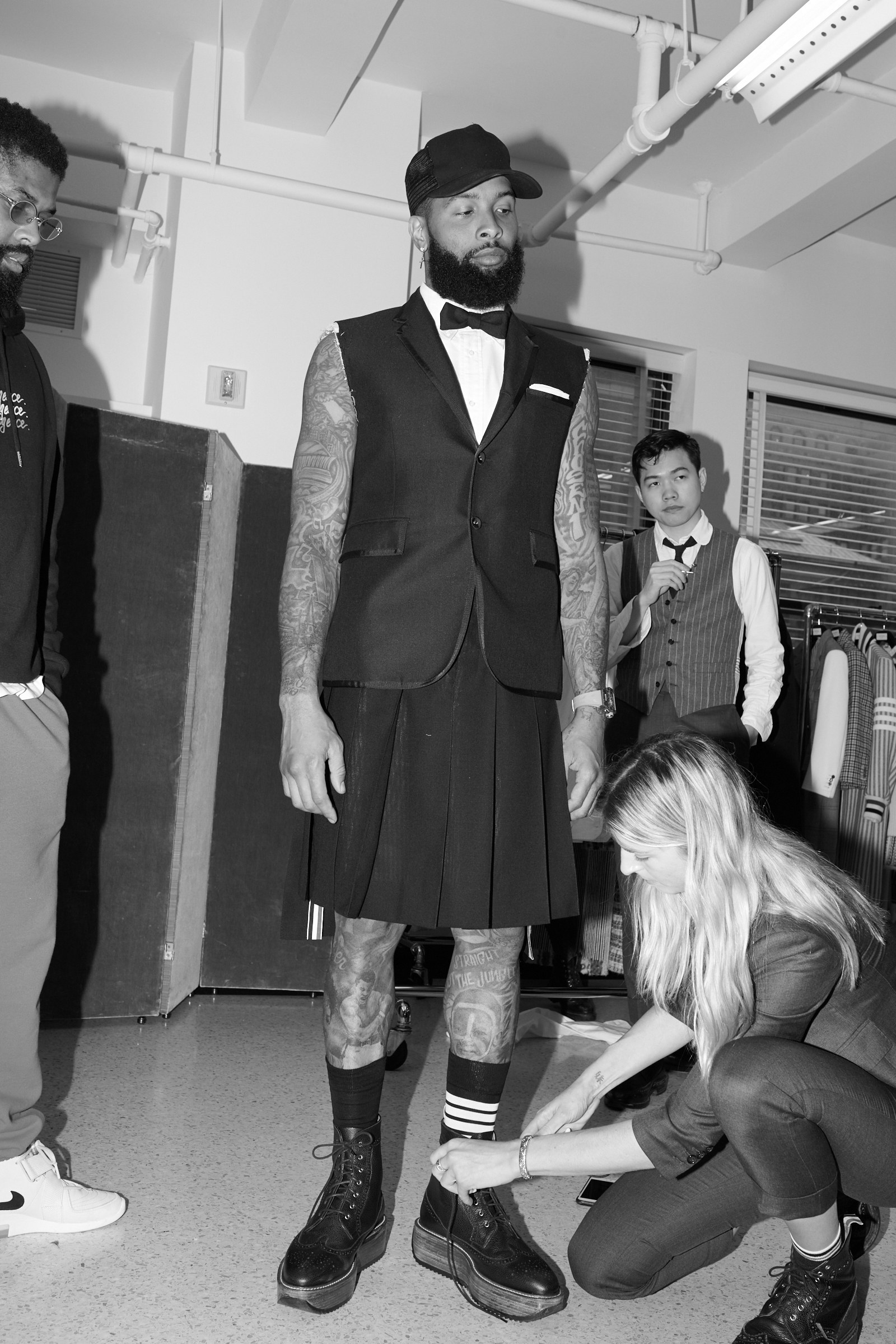 Who is the cutie measuring Odell’s inseam? He could get it. Lowkey Odell physically knocked me over at my job when he was getting on an elevator and I was getting off. He has quick reflexes cause he caught me before I fell over. (Swoon). It took my brain a second and a half to realize it was him cause of his hair at the time.