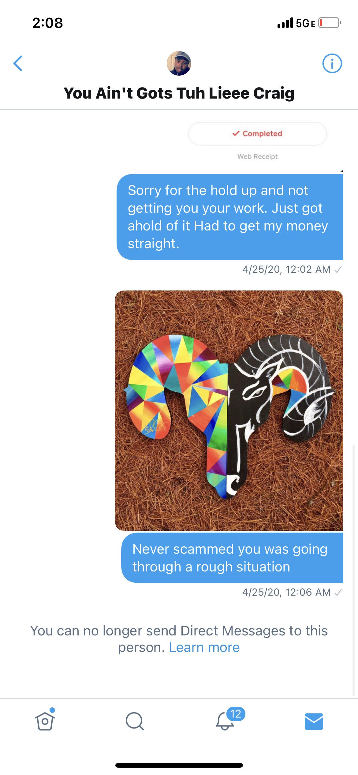 But as one of the homies… I lie to you not. The man was going through some very traumatic bs. I wish he didn’t have to, otherwise this whole “story” would be irrelevant. Bc the mf would’ve gotten his stuff on time.