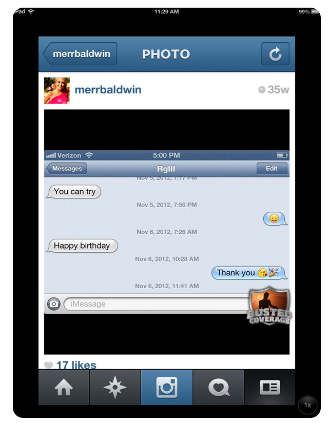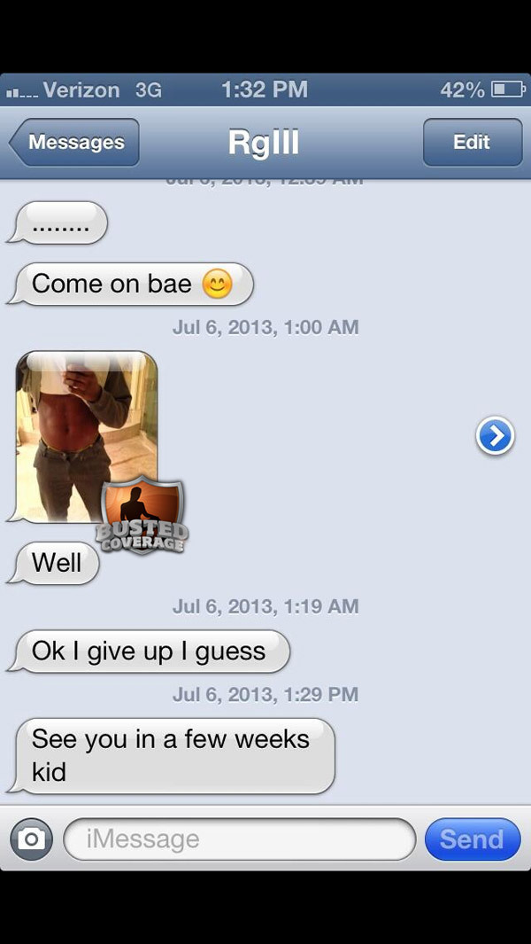 Merdith Barber, a self-professed Redskins fan, is the VCU student who posted texts she says came from RG3 on his wedding day (July 6). She contacted us yesterday to clarify some information in our Sunday post and eventually went into saleswoman mode to get us to buy what she says are “inappropriate” photos RG3 sent to her.