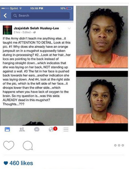 I believe she was alive.The mug shot was taken when she was booked in Friday.